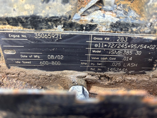 Cummins ISM 385 Engine. Front cut for spares only. Front Axle, steering box etc